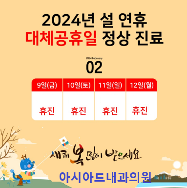 2월 12일(월) 대체공휴일은 휴진합니다.